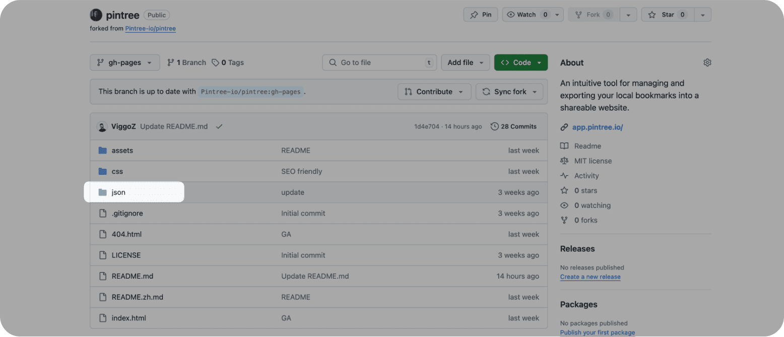 pintree仓库(即刚才 Fork 的项目)。 - 点击仓库中的
